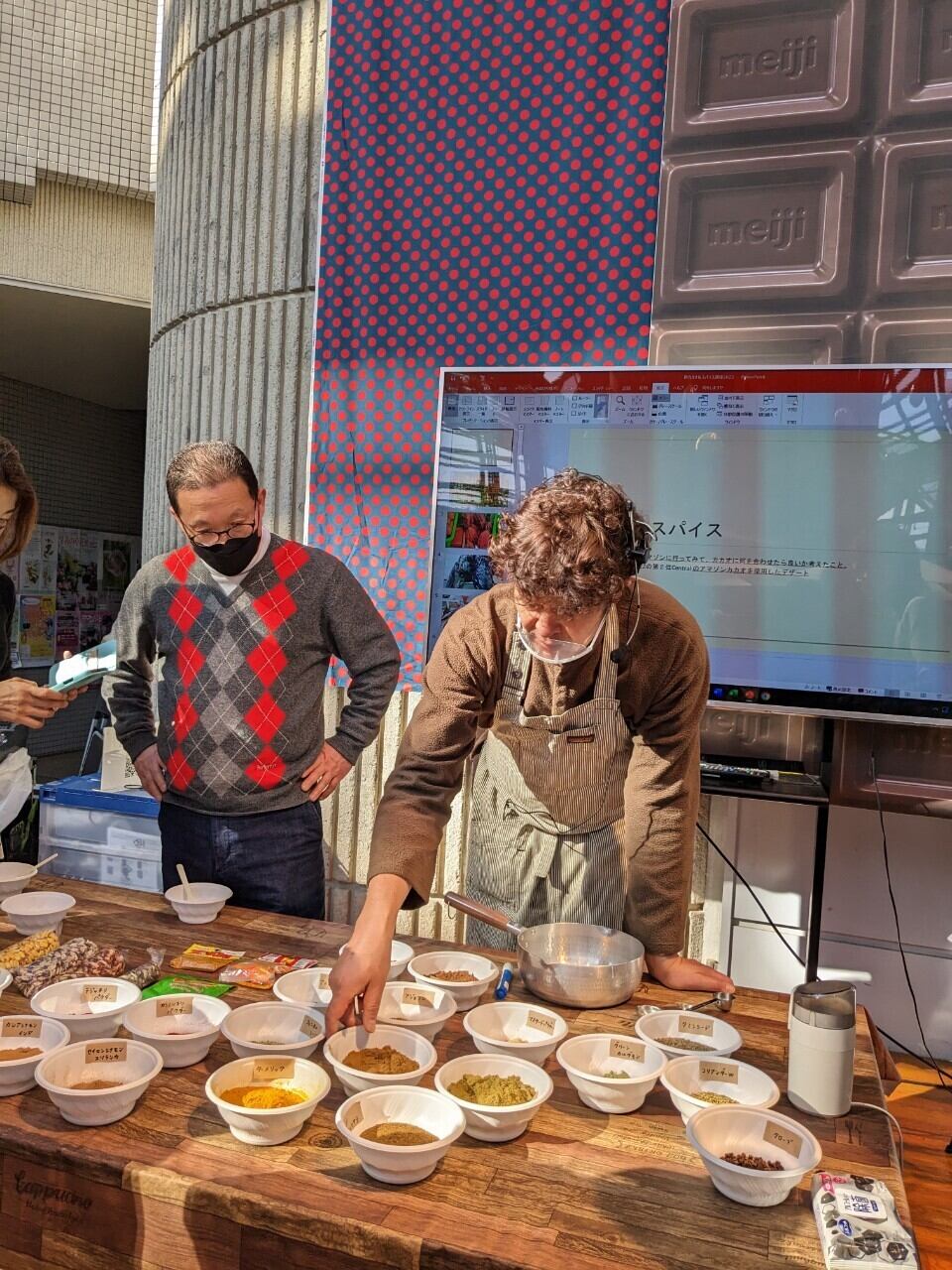 実際にアマゾンカカオの原産地・ペルーへ足を運んだご経験から、スイーツのためのスパイス使いなど、魅力あふれるお話をうかがいながら、カカオを使ったスパイスカレーのデモンストレーションも!